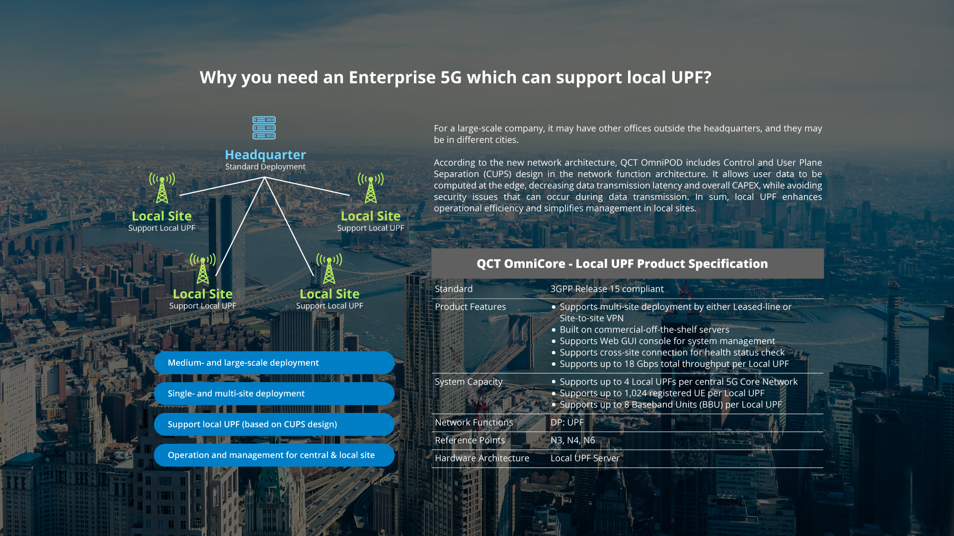 QCT’s Enterprise 5G Solution portfolio, OmniPOD, comprises 5G Core (OmniCore), 5G RAN (OmniRAN), and OAM (OmniView), which together form an “End-to-End TURNKEY” solution.​